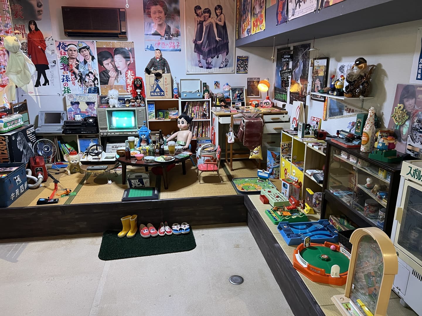 1970年から1980年当時の居間を再現。ちゃぶ台にはサンマやごはん、みそ汁などもあり、実際の食卓のようになっています。勉強机には当時の女の子の遊ぶものや生活用品なども数多く展示されています。畳に上がって記念撮影もOKです。