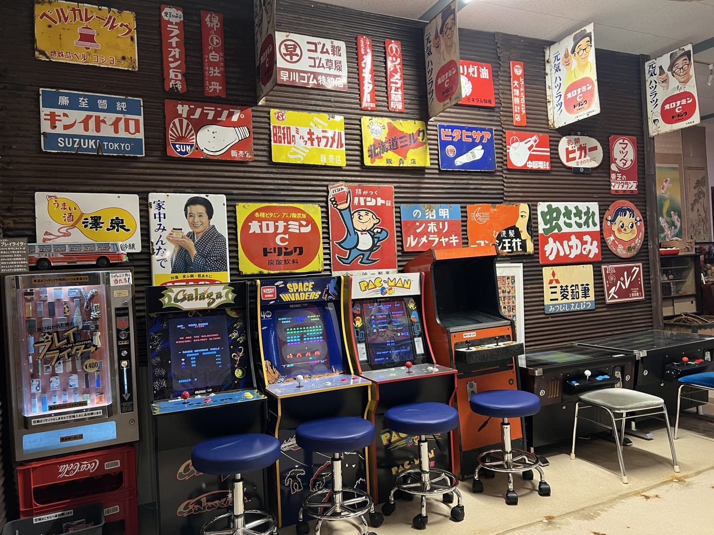 昭和レトロなゲームを体験できるレトロゲームコーナー。インベーダーやギャラクシアン、パックマン、ゼビウスなどレトロゲームが無料で遊べます。